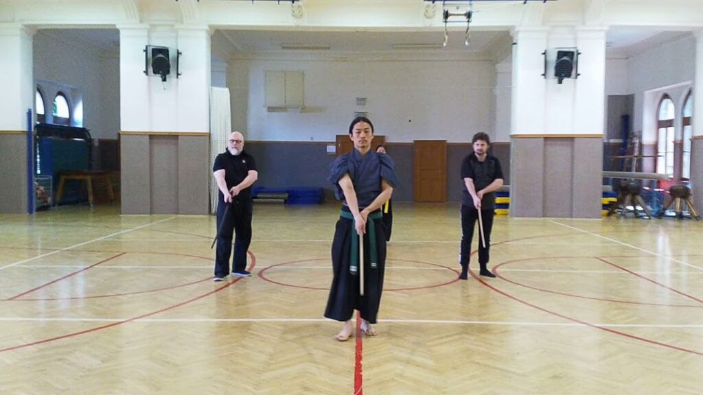 Kengido. Vstupní celodenní seminář, dva na čtyři poměr účastníků Česko/Japonsko (sensei velí, čtvrtý fotí).